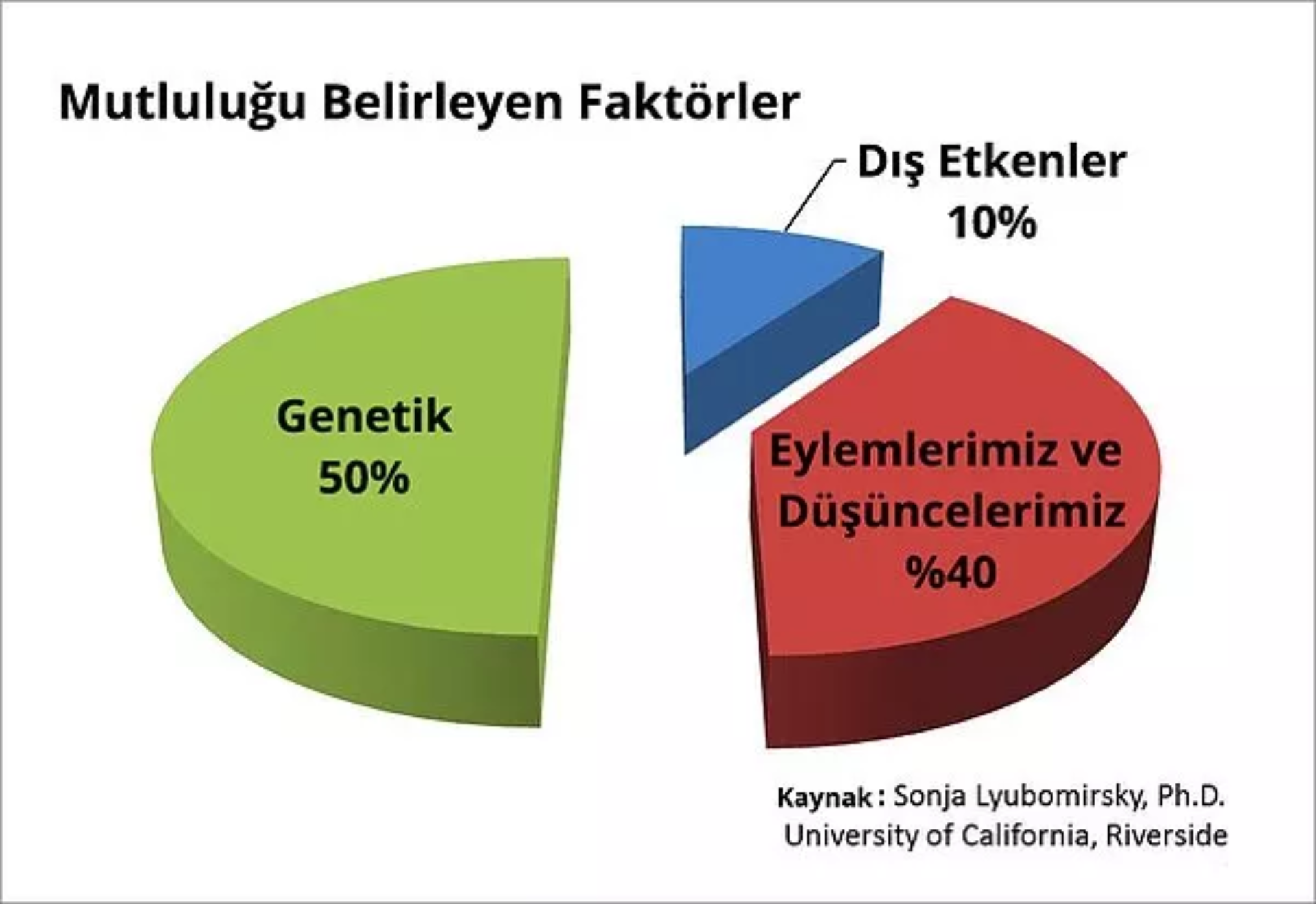 Şemamızın en büyük dilimi, insanların mutluluk seviyeleri arasındaki farkın yüzde 50’sinin genetik d ...